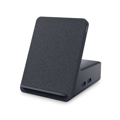 Base con bocina y micrófono integrados, ideal para videollamadas y trabajo remoto. Conecta todo desde un solo dispositivo USB-C. Plug & Play, diseño profesional, incluye caja y garantía.