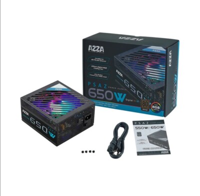 Fuente de poder para PC Gamer con potencia de 650W, certificación 80 Plus Bronze y ventilador RGB. Ideal para equipos de alto rendimiento con eficiencia y estilo.