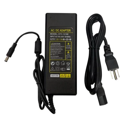 Adaptador de corriente para cámaras de seguridad y dispositivos electrónicos que requieren 12V y hasta 10A. Diseño robusto con protecciones eléctricas integradas para un funcionamiento seguro y estable.