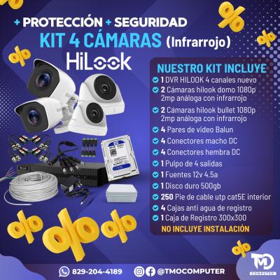 Protege tu hogar o negocio con nuestro completo kit de videovigilancia HiLook, diseñado para brindar seguridad, audio integrado y grabación en alta definición 1080p. Con la tecnología ColorVu, tus cámaras capturan imágenes claras y a todo color incluso en condiciones de poca luz, garantizando una protección confiable las 24 horas.