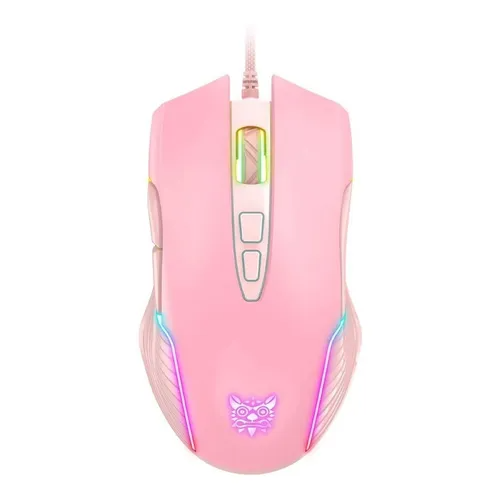 Mouse gamer Onikuma CW905 rosado con conexión USB, 6 botones, sensor óptico de hasta 3200 DPI e iluminación RGB. Diseño ergonómico, suave y elegante. Compatible con PC, laptop y consolas. Ideal para juegos y uso diario con estilo.